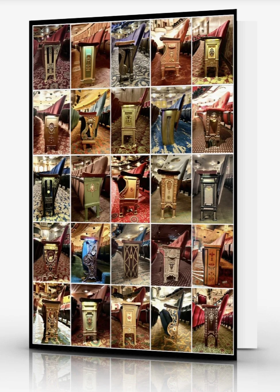 Why stop at just lighting fixtures. Sometimes you forget to look down. I decided that some of the aisle seat stanchions had their unique quality and charm all their own, sparking some other designs to play with. The architecture in these theatres are endless. I hope to come up with many more creative ideas.